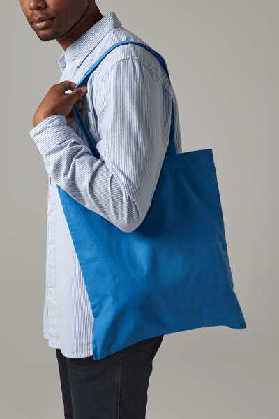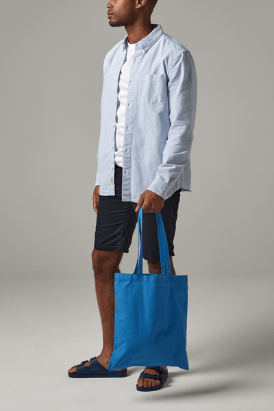 Baumwolltasche mit langen Trägern, 10 Liter Volumen. 38cm x 42cm.