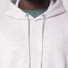 Dieser Hoodie verfügt über eine doppellagige Kapuze aus dem gleichen Material, runde Kordeln in passender Farbe sowie Metallenden und -ösen für zusätzliche Robustheit und Design. Die Set-In Ärmel und die Kängurutasche auf der Vorderseite machen den Hoodie besonders funktional und praktisch. Der Fischgratband im Nackenbereich und der Halbmond aus gleichem Material bieten zusätzlichen Komfort und Stabilität. Durch die 2-Nadel-Kettenstiche an den Nähten des Saums, der Bündchen und des Armlochs wird der Hoodie zusätzlich verstärkt.